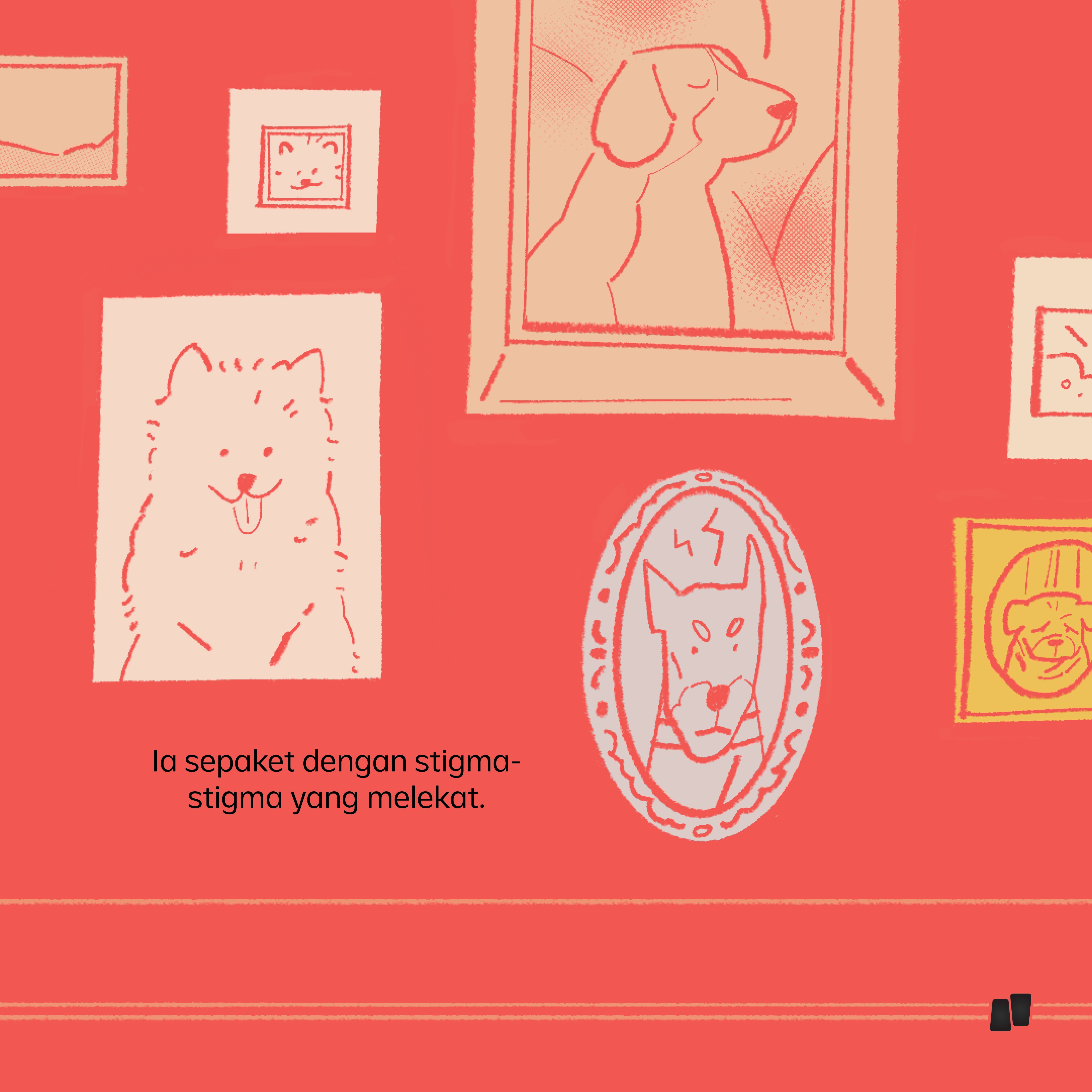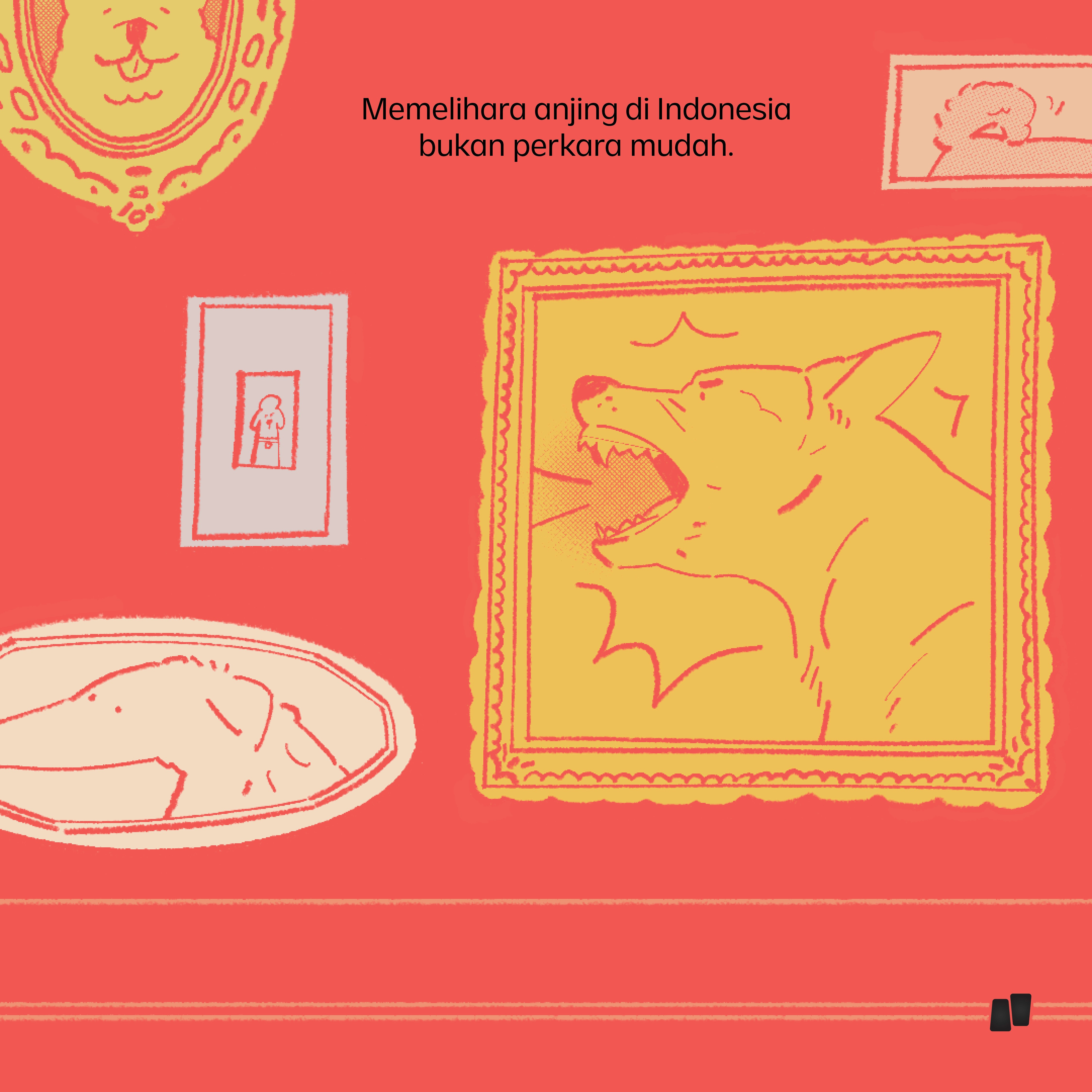 Multi-slide illustration for an explainer video exploring the challenges of owning dogs in Indonesia, where cultural and religious stigma create barriers for pet owners.