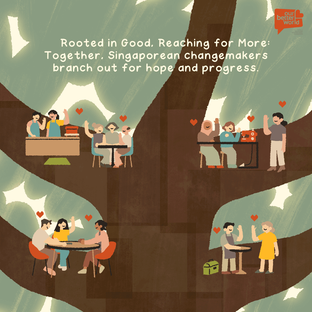 Final colour work for a mini animated series by Our Better World that celebrates Singaporean changemakers and their positive impact on communities across Asia.
