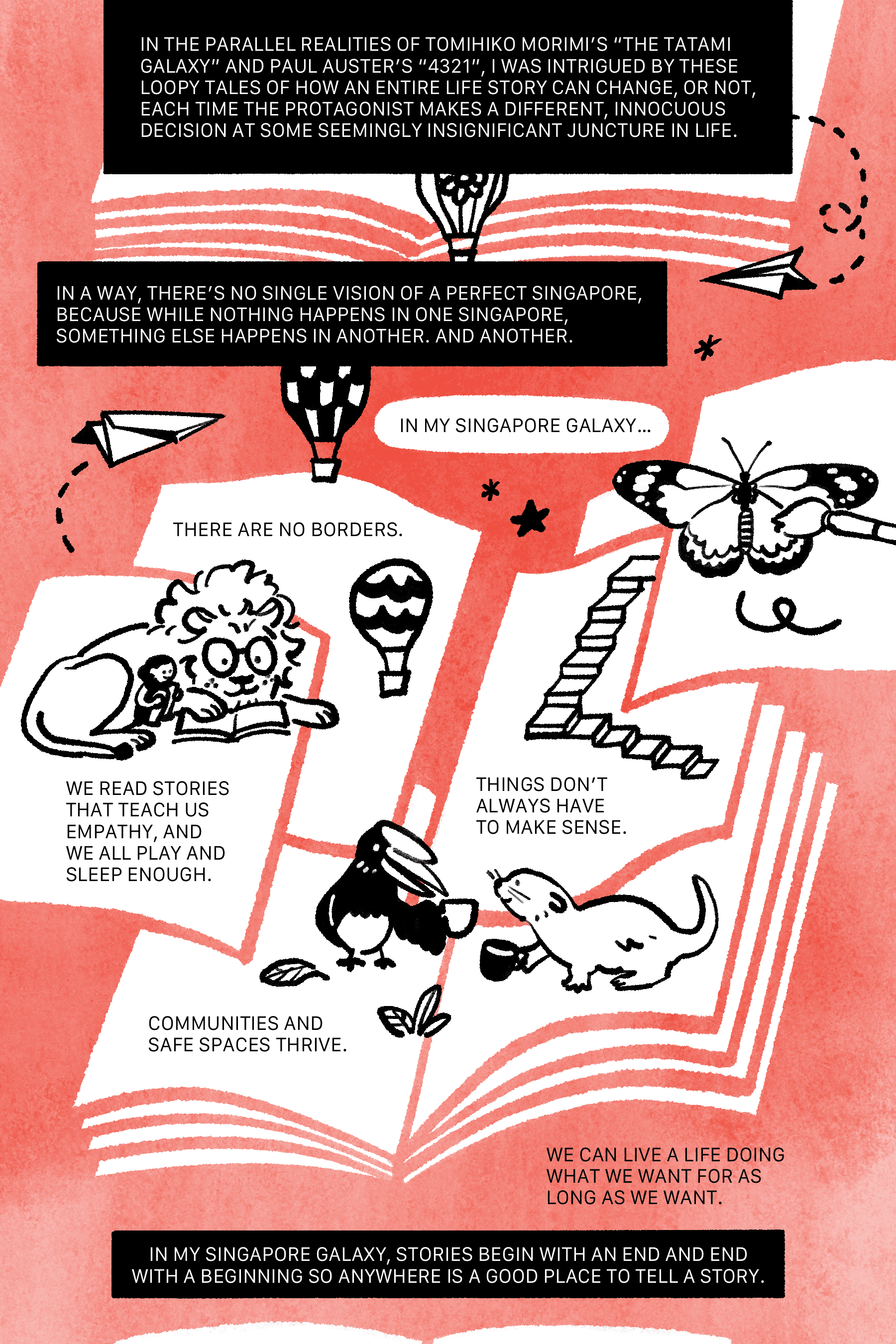 This project distills each author’s vision into an accessible sequential format, inviting broader audiences to consider what their own ideal Singapore might look like.